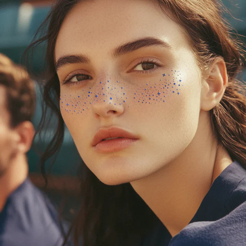 Freknuplástrarnir eru einfaldir í notkun og skilja eftir glitrandi áferð sem endist í allt að 3 daga - en er líka einfalt að fjarlægja með förðunarhreinsir.