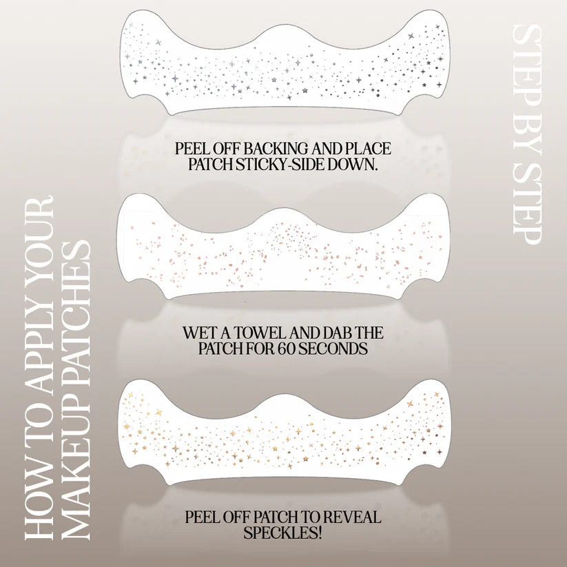 Freknuplástrarnir eru einfaldir í notkun og skilja eftir glitrandi áferð sem endist í allt að 3 daga - en er líka einfalt að fjarlægja með förðunarhreinsir.