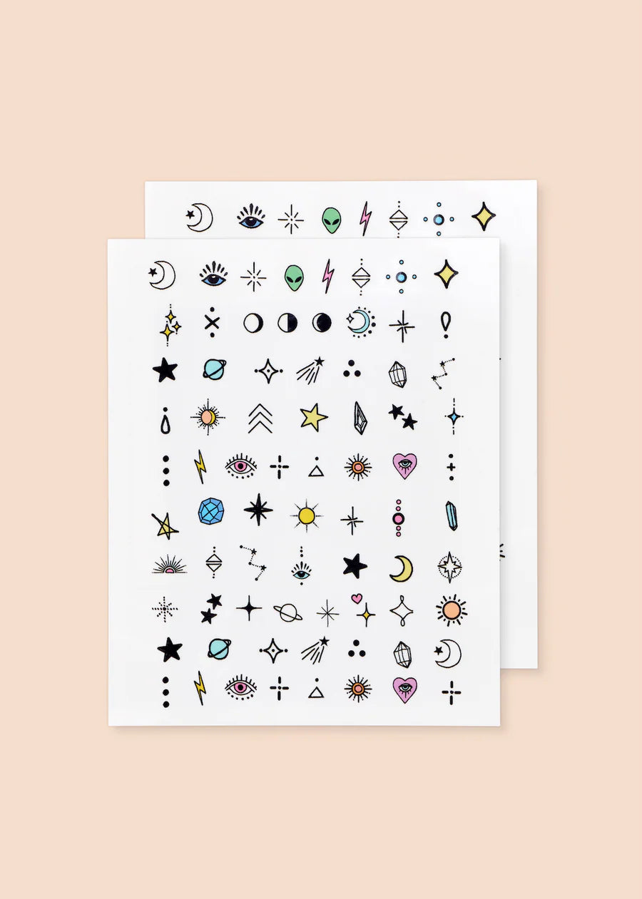 Litríkt og skemmtilegt sett fyrir bæði neglur og húð. Yfir 100 handteiknuð flúr í pakkanum.