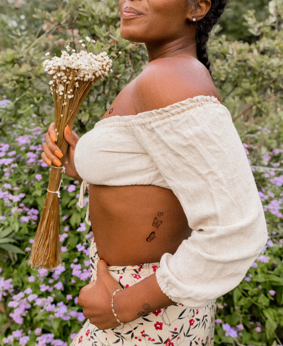 Fágað sett af villtum blómaskreytingum með yfir 20 handteiknuðum húðflúrum í pakkanum.